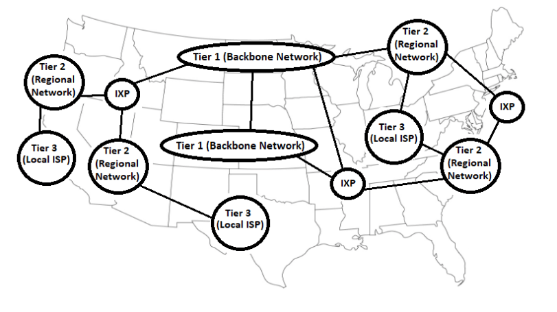 The internet is best described as a “network of networks.” It’s divided into regions that perform different functions. Access to the internet is provided through an Internet Service Provider (ISP). The ISP you’re probably most familiar with is the one you pay directly for your home internet (for example AT&T, Verizon, or Bell Canada). These providers are known as Tier 3 providers. But ISPs do a lot more than simply sell you a home internet plan. There are also Tier 1, and Tier 2 internet service providers.
