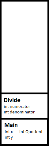 As you can see, Divide is its own stack, and is completely independent of Main, it has its own variables that are local to it.