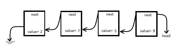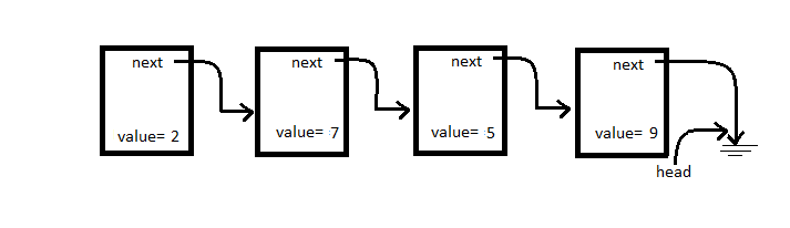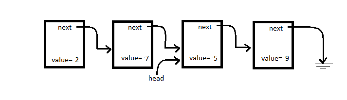 Finally, the very last node in the list points at NULL. In the diagram below the “ground” symbol from electronics is used to denote NULL.