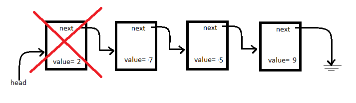 Thus, executing the line head=head->next gives us this: