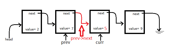 prev->next = curr->next;