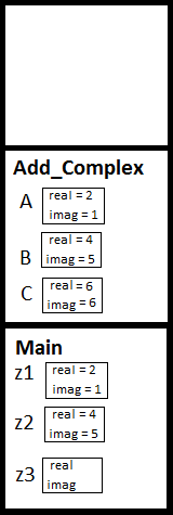 Inside the add function, we create another Complex number, do the adding, and then make a copy of it and return it to Main.