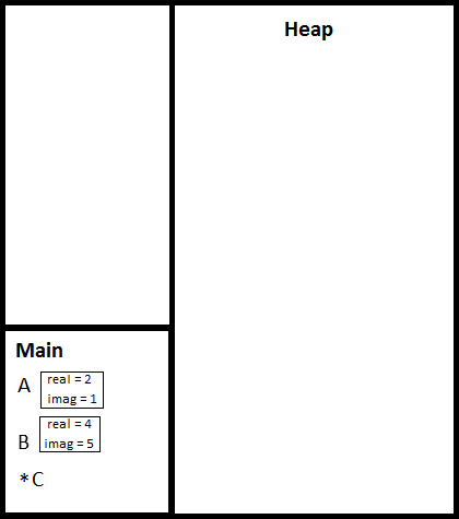 Okay, first we have 2 objects declared in Main, and one pointer to a Complex object.